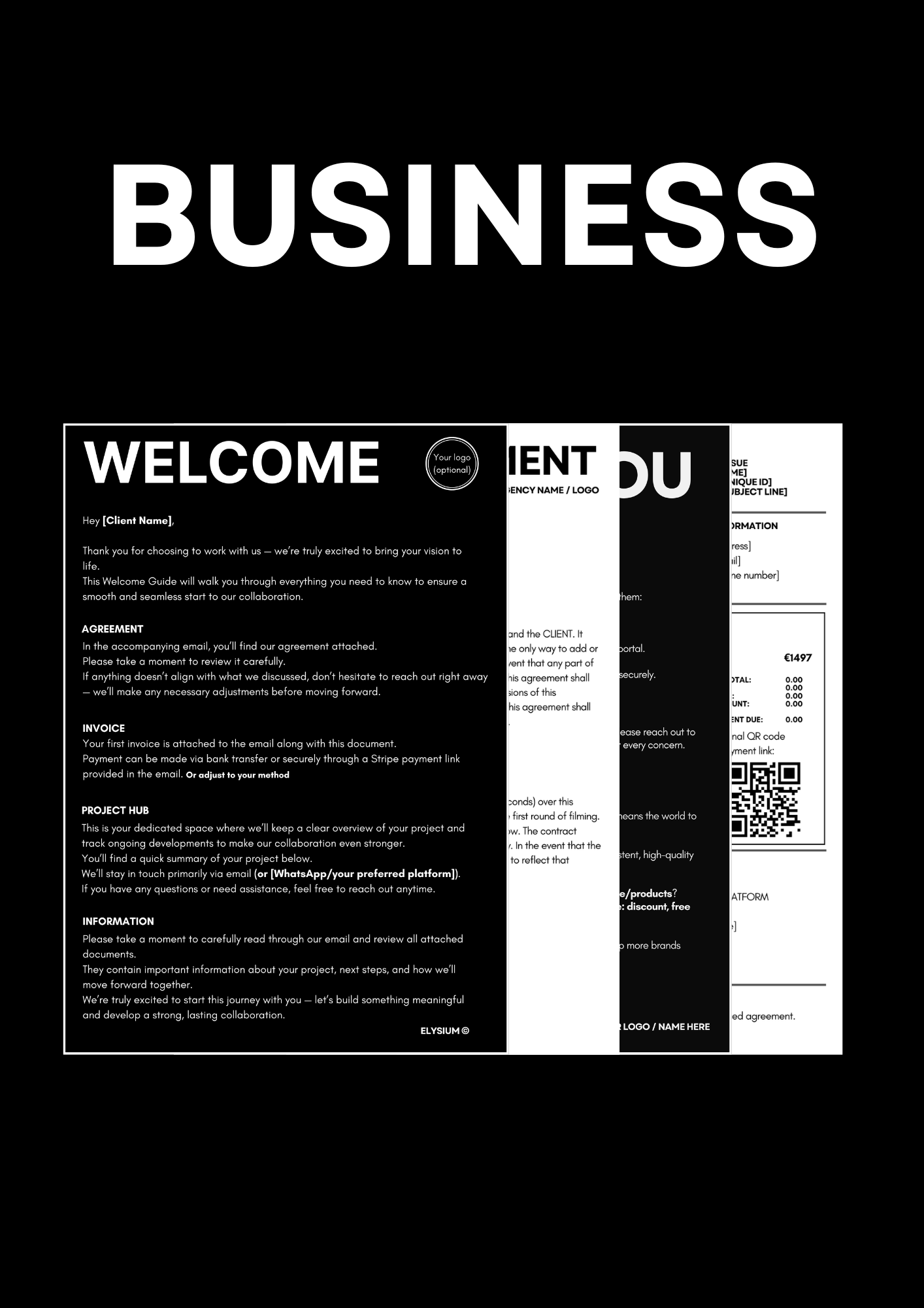 From invoices and welcome packets to branding tools and digital documents — our templates are easy to use, modern, and ready to customize in just a few clicks.