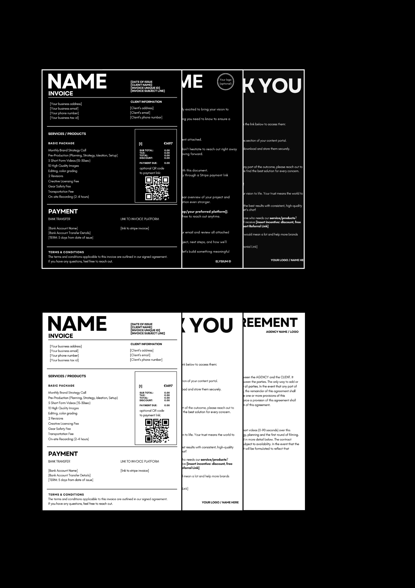 From invoices and welcome packets to branding tools and digital documents — our templates are easy to use, modern, and ready to customize in just a few clicks.